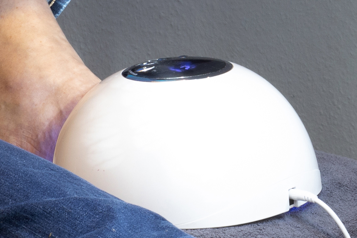 Medizinisches Nagelgel wird mit UV-Lampe ausgehärtet